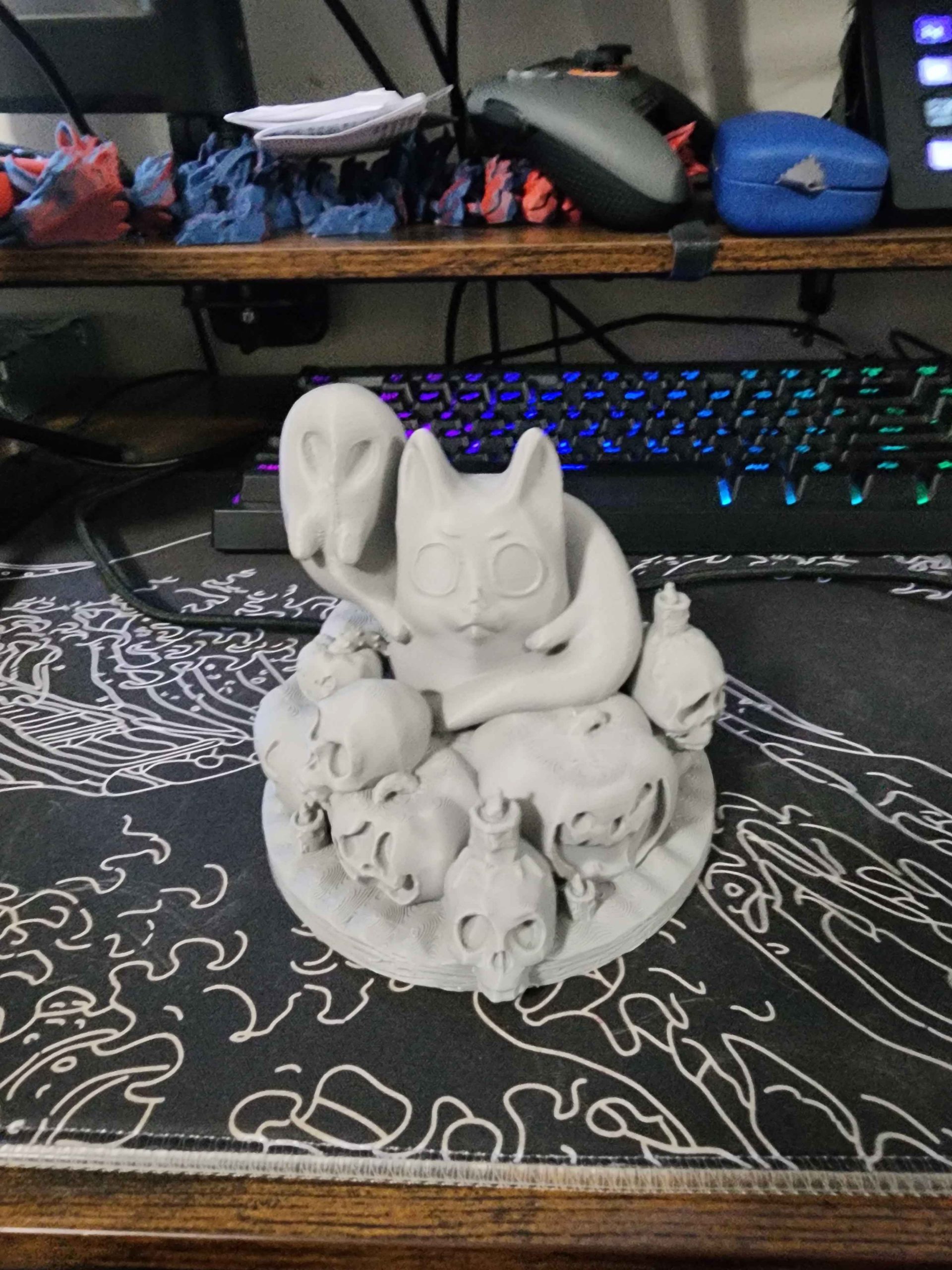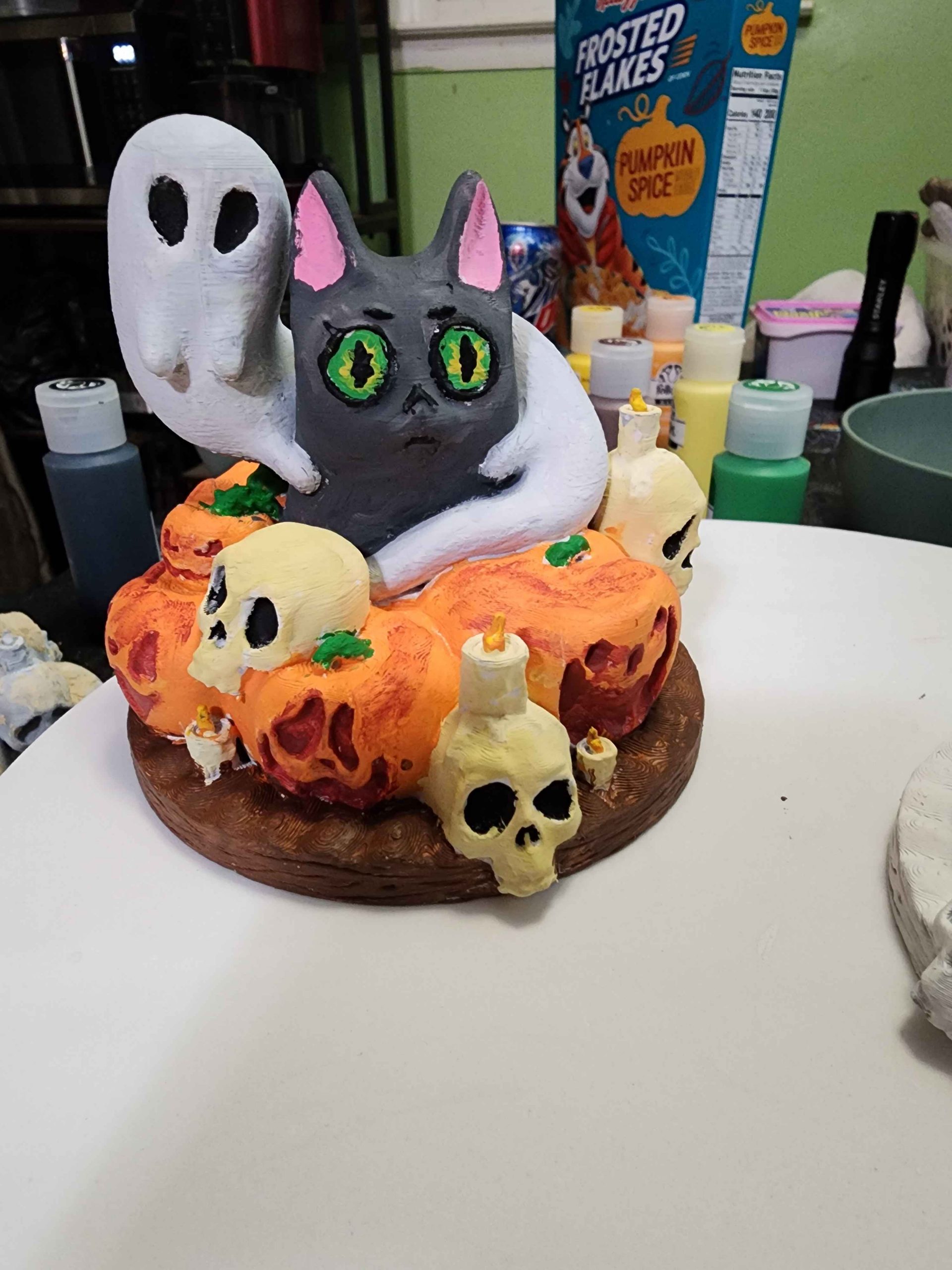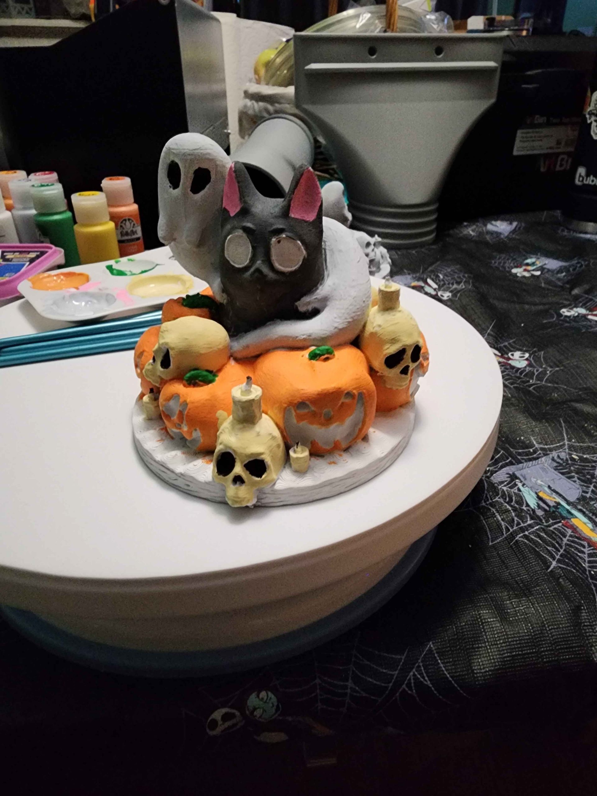 Haunted Halloween Cat – 3D Printed Figurine with Ghosts, Skulls & Pumpkins