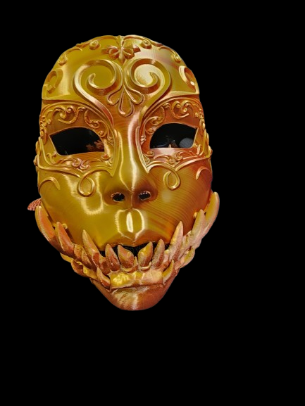 Elevate your costume, collection, or decor with this stunning 3D-printed ornamental mask featuring intricate swirling details and a menacing fang design. Whether for cosplay, display, or a unique statement piece, this mask offers an elegant yet terrifying aesthetic.